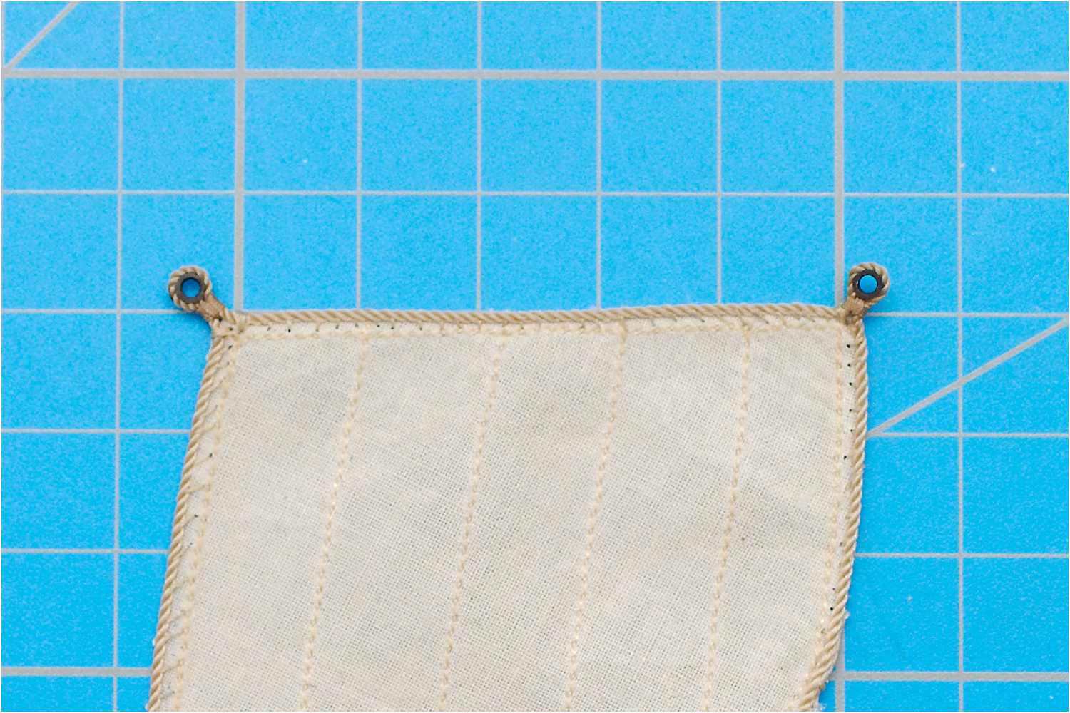 Zum Abschluss noch mit etwas Sekundenkleber versiegeln und das Segel ist komplett.