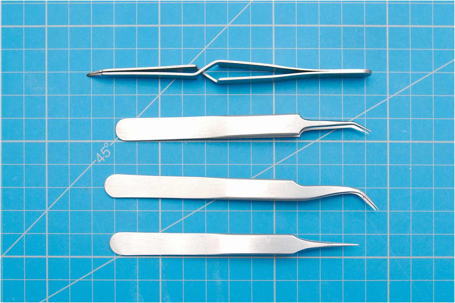 Hochwertige Pinzetten von der Fa. Bernstein und Dumont. Meine Lieblingspinzette ist dabei eine unverwüstliche Dumont No. 2.