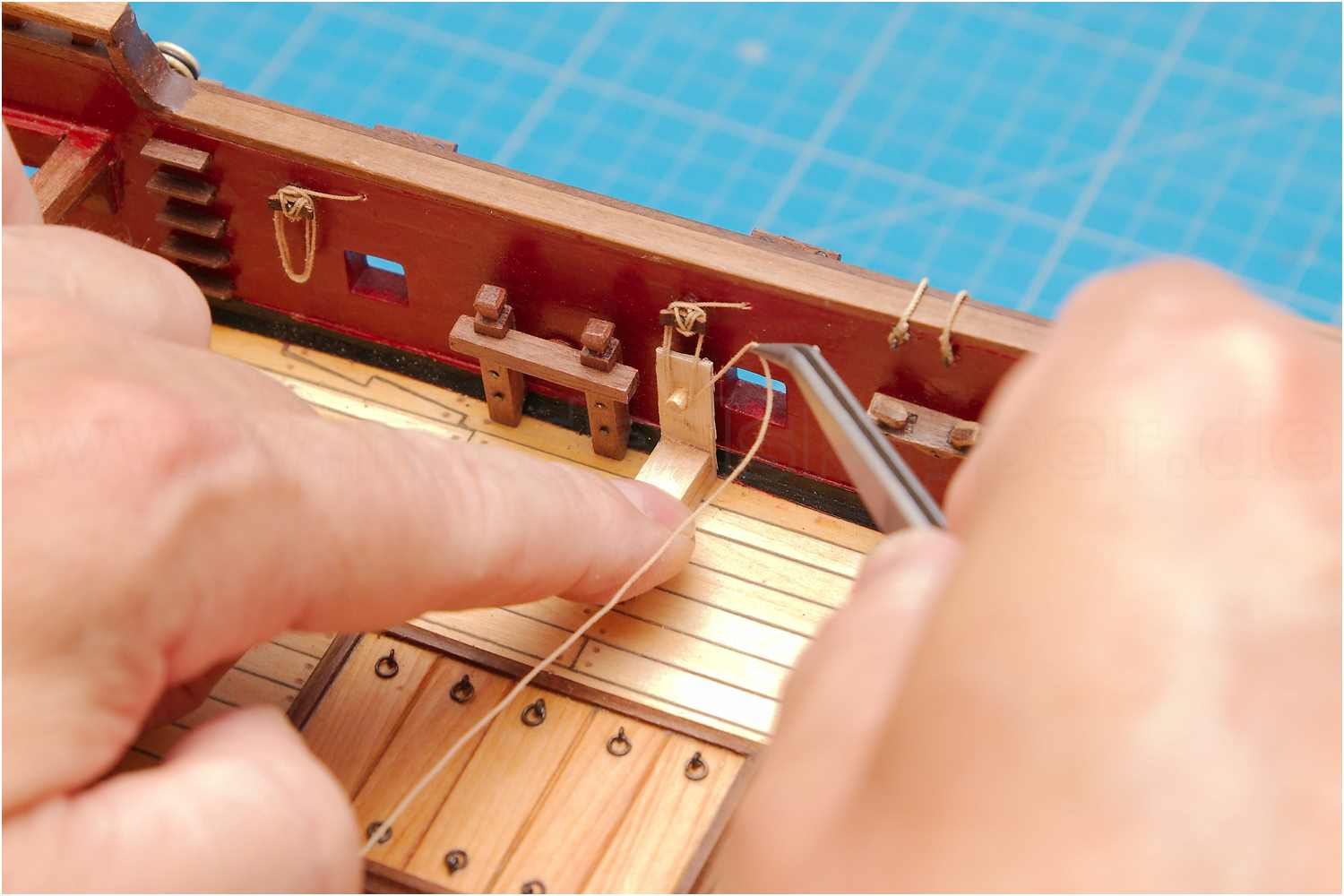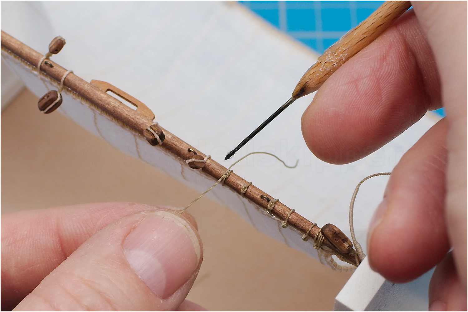 Für das Auftakeln eines historischen Standmodells, mit seiner recht umfangreichen Anzahl stehenden und laufenden Gutes nutze ich die unterschiedlichsten Werkzeuge.
