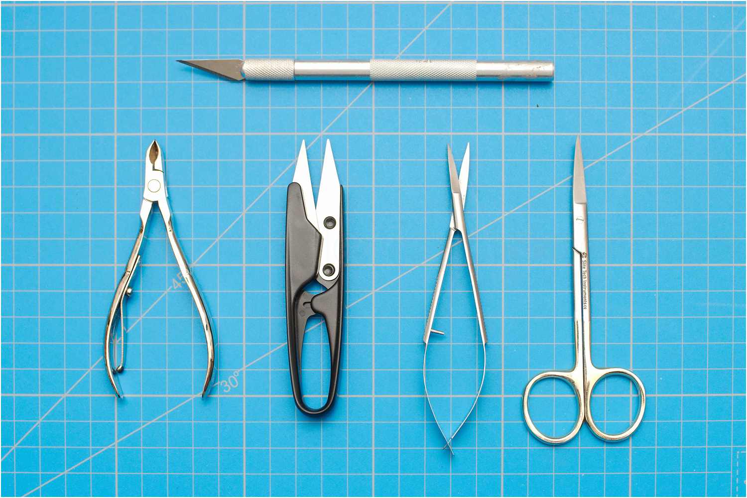 Neben Skalpell/Klingenmesser von links nach rechts:
