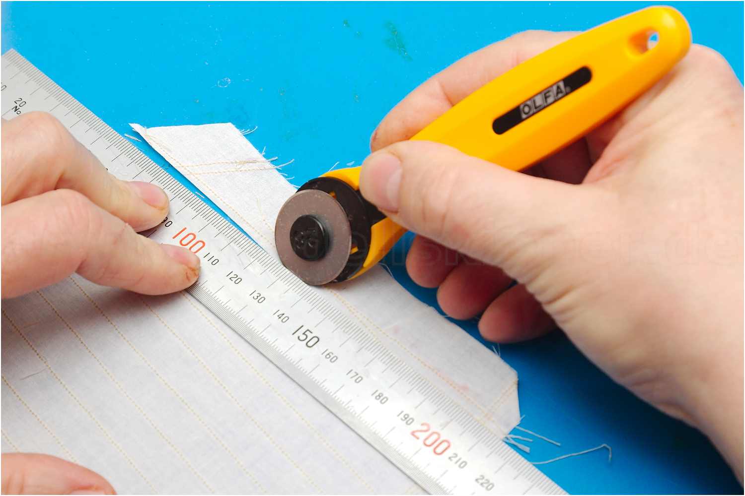 Ein sog. Rollschneider ist ein Klingenmesser mit runder beweglicher Klinge, speziell zum Schneiden von Stoffen, aber auch gerade Kanten von Schablonen.
