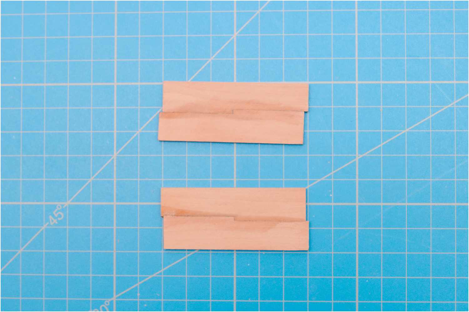 Um einen exakte Passung zu erreichen, sägt man sich passende Holzstücke mit ausreichend Übermaß zu, spannt alle Teile zusammen als Block ein und fräst oder sägt einen Absatz.