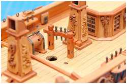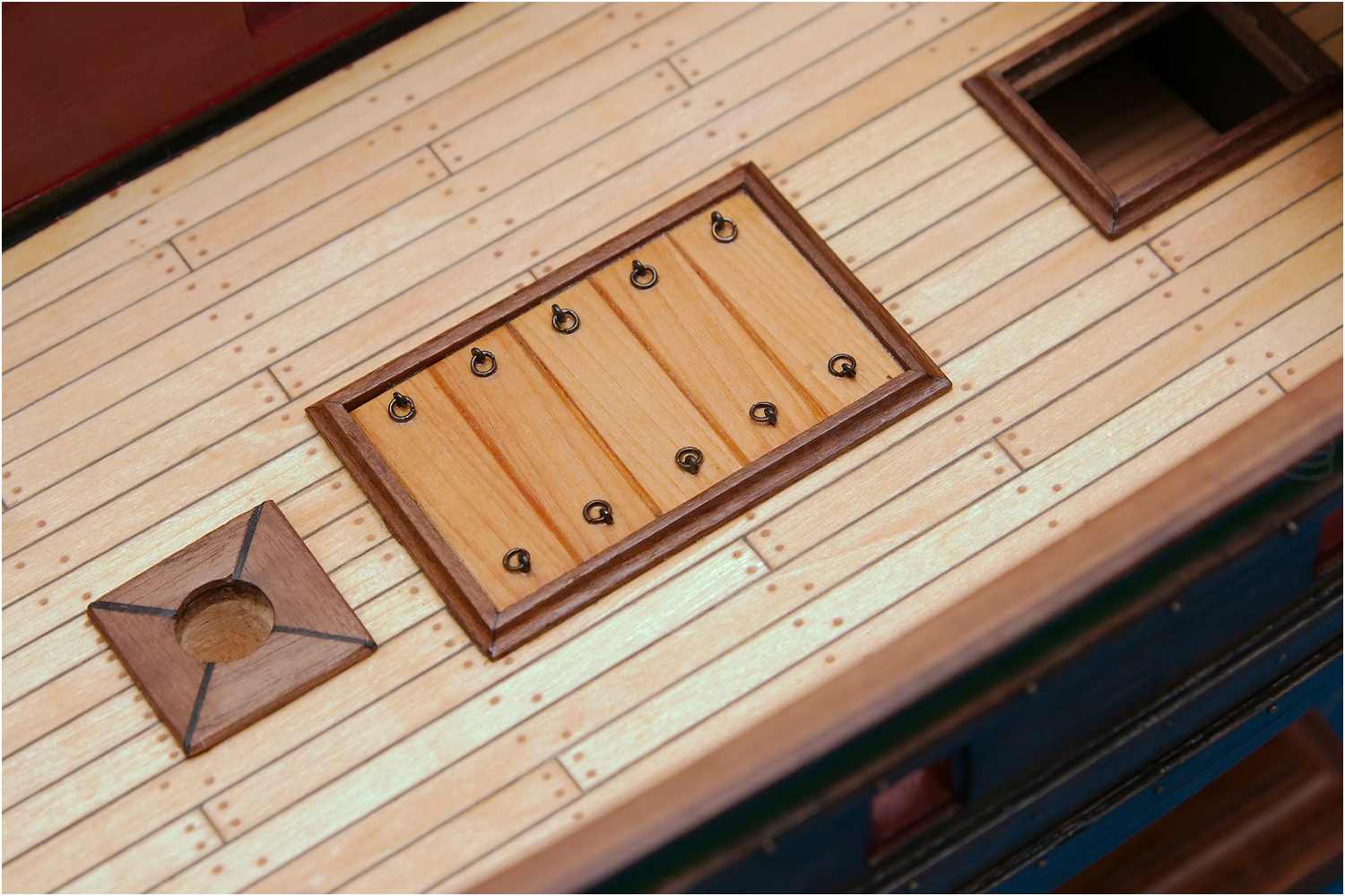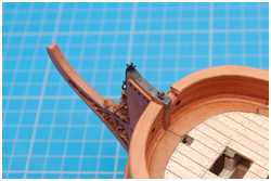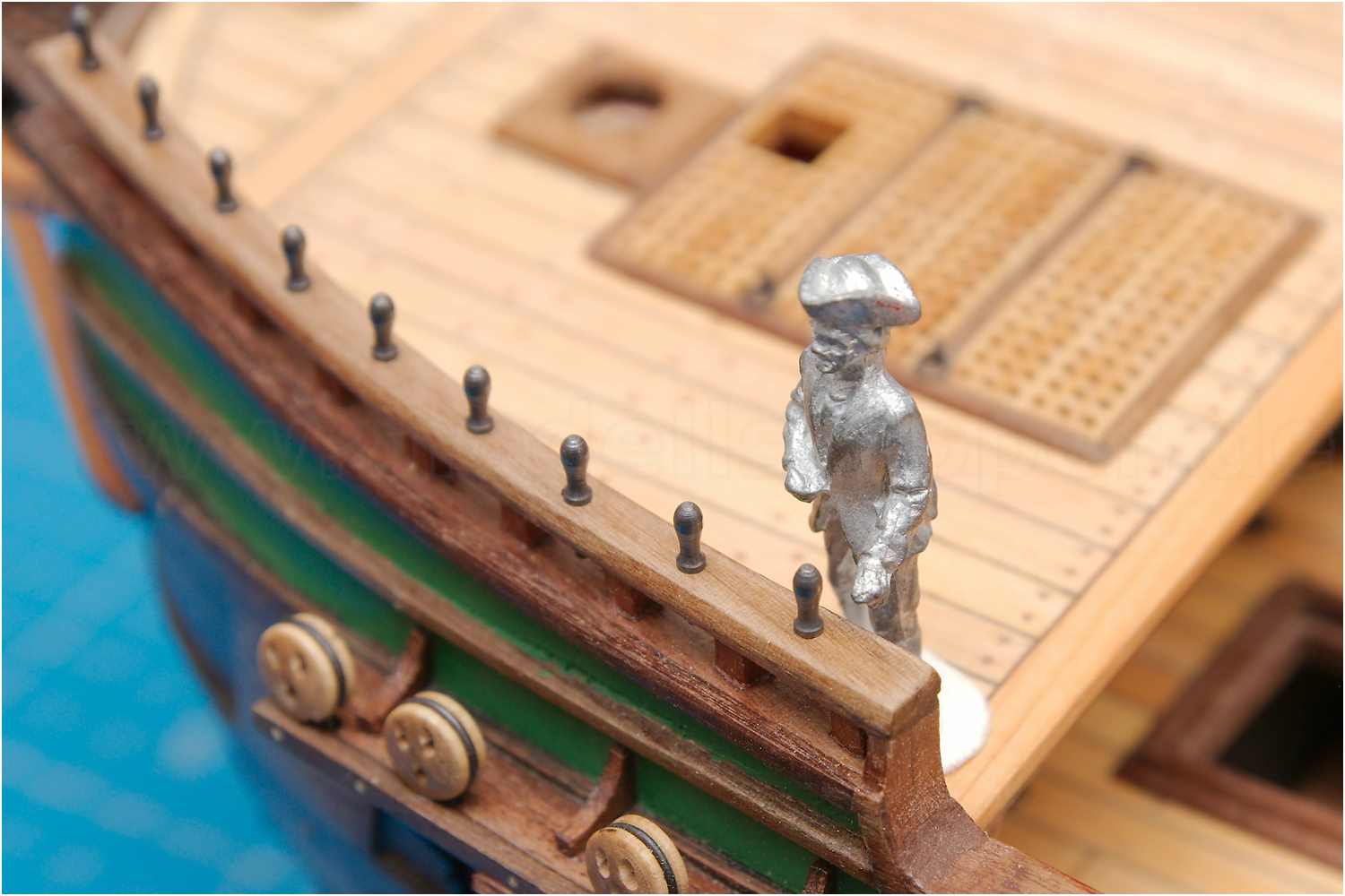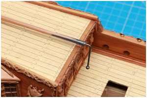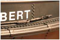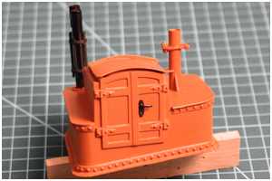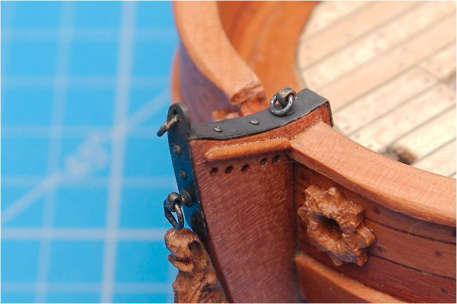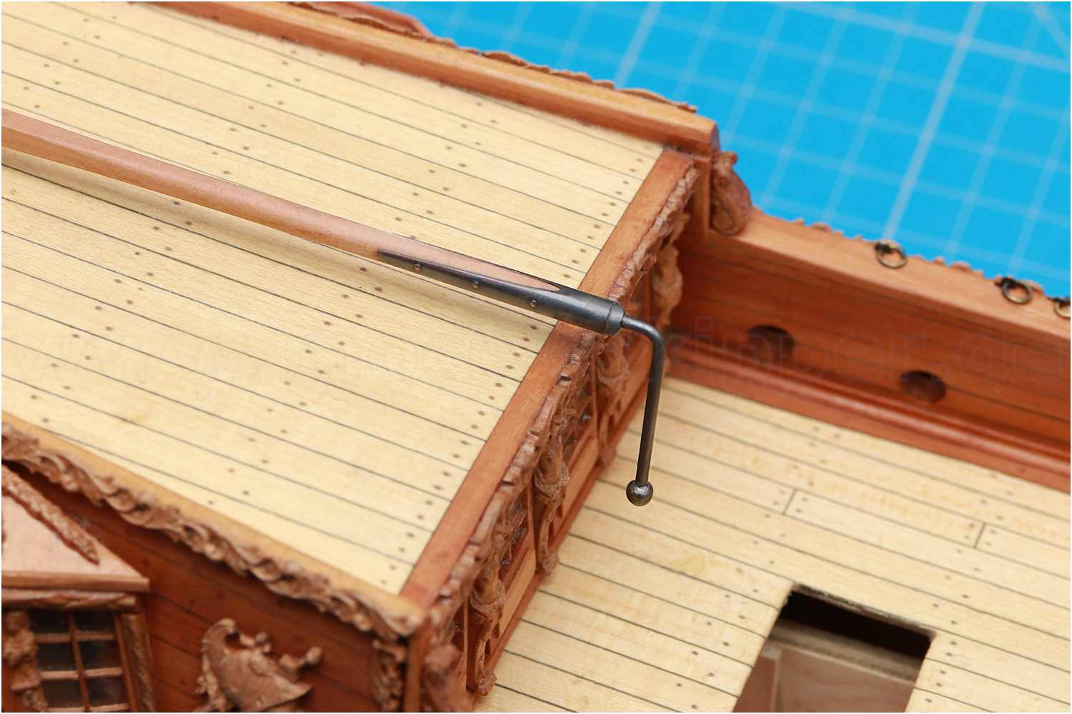 Schornstein und Klinke wurden brüniert. Die eingefärbten Messingteile heben sich sehr gut von der teils hellen Lackierung ab und passen hervorragend zum Gesamtbild des Modells.