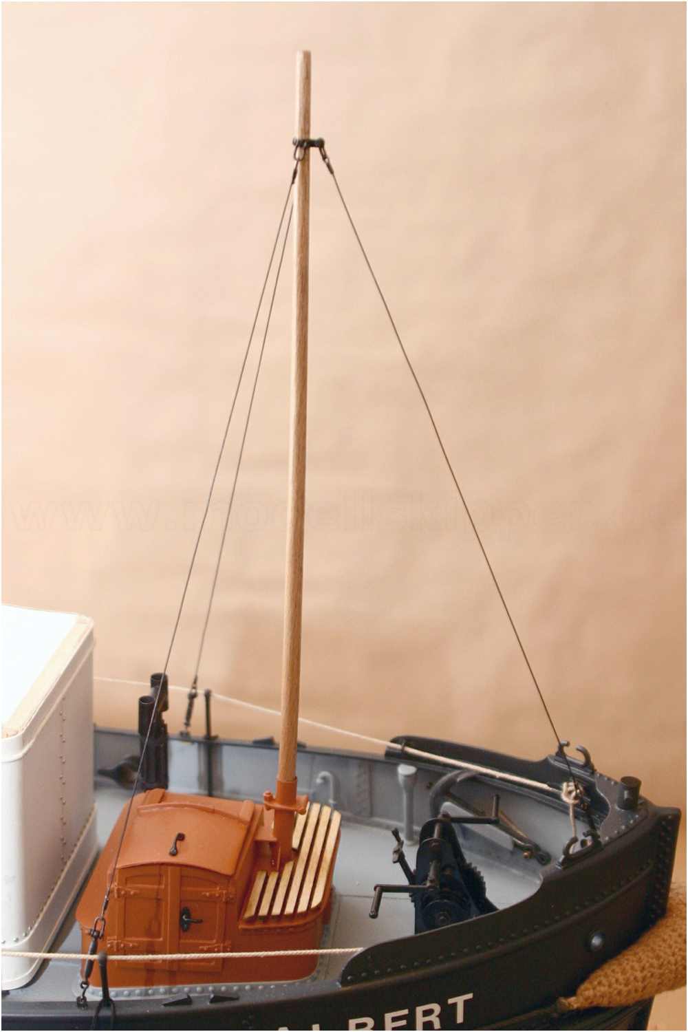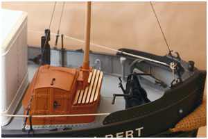 Oftmals sieht man an Modellen von Arbeitsschiffen blank geputzte Messingteile, das passt irgendwie nicht so recht. Messingputz zu feierlichen Anlässen mag auf einer Segelyacht Sinn ergeben, aber auf einem Schlepper oder Fischkutter sieht wenig realistisch aus.