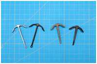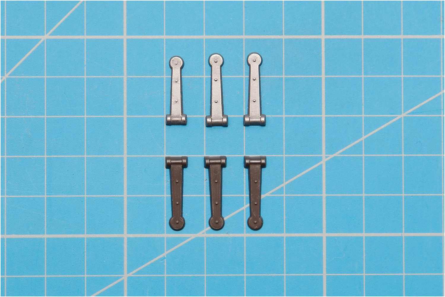 Ebenso diese Scharnierimitate aus Kunststoff (unten) sollten ein Metalleffekt (oben) erhalten.