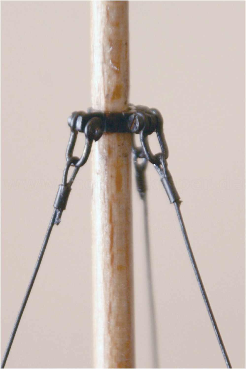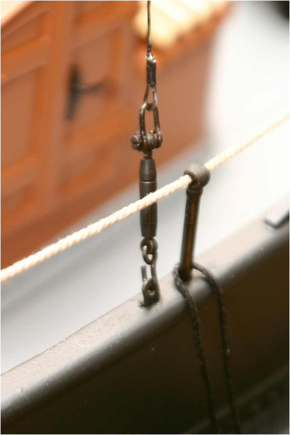 Blankes Messing an Schäkeln, Spannschrauben, Ketten oder Relingsstützen würde bei einem Schlepper überhaupt nicht passen, aber brüniert schon. Dabei bleiben die Schraubverbindungen vollkommen funktionstüchtig. Farbe würde das M1-Gewinde verkleben und wäre nicht mehr gängig.