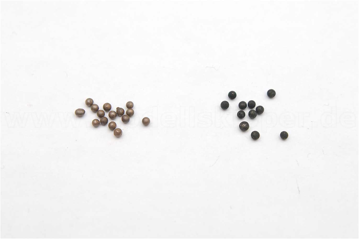 Eisenschrot ist insofern interessant, da es als Kugeln für Strahlmittel in verschiedensten Größen erhältlich ist, z.B. von 0,8 bis 2,5 mm. So kann es gut als Kanonenkugeln für diverse Kaliber auch in kleinen Maßstäben verwendet werden kann.