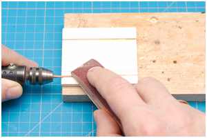 In die Handbohrmaschine spannt man eine Vierkantleiste ein, legt diese über die tiefere Nut und verjüngt sie, bis sie komplett in der Nut liegt und kein Material mehr abgeschliffen werden kann.