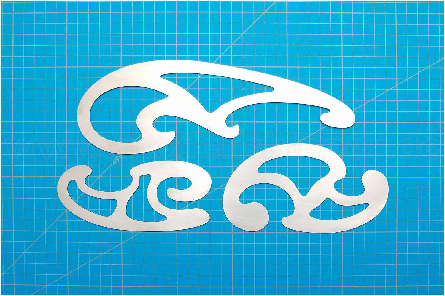 Betrachtet man die Formen genauer, findet man Ähnlichkeiten mit den oben gezeigten Schiffskurven, jedoch sind diese Lineale mit einer Länge von bis zu 45 cm recht groß und für kleinere Kurvenverläufe schlecht geeignet.