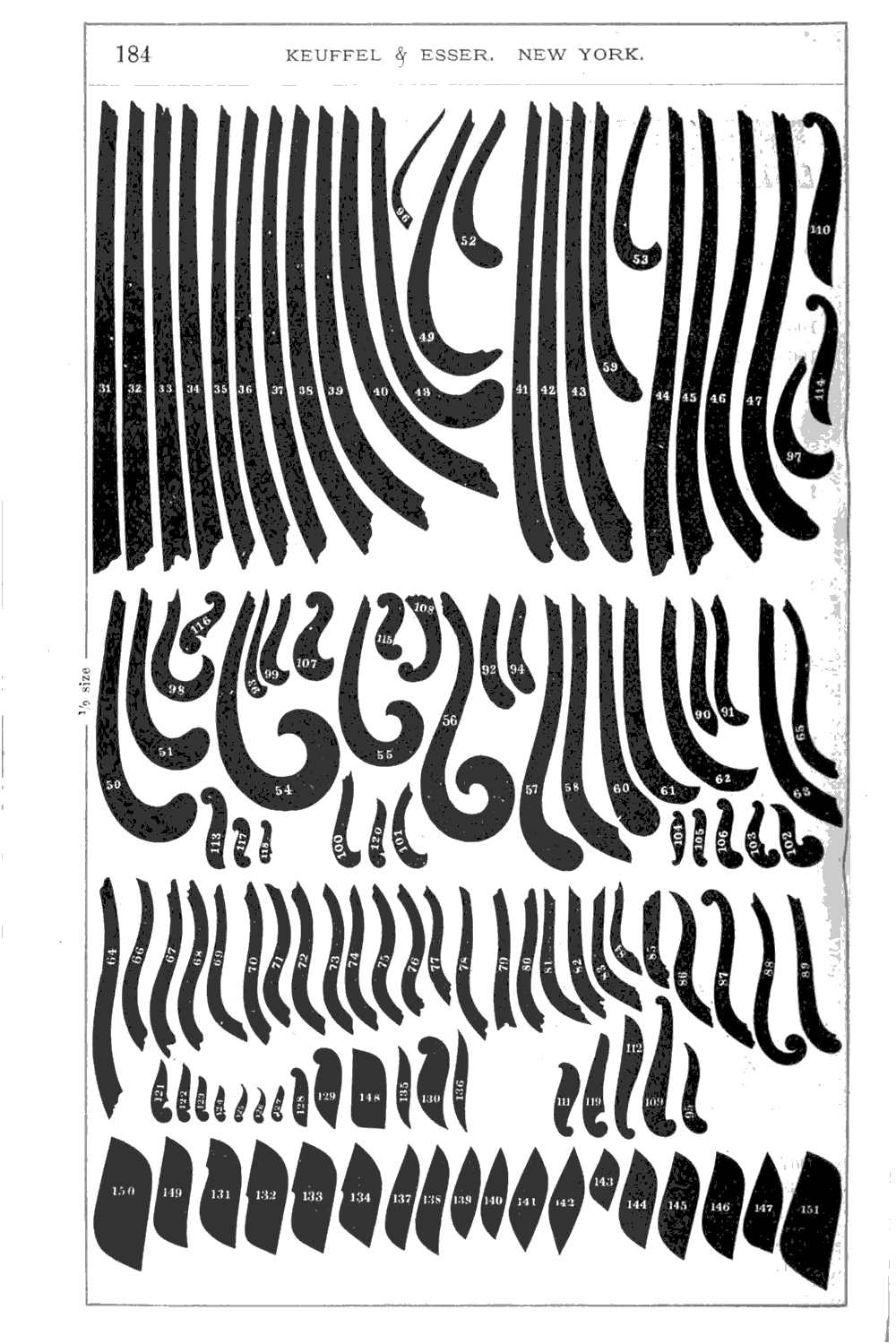 Copenhagen Ship Curves, Keuffel & Esser, NY, 1883 (Bild: https://babel.hathitrust.org/cgi/pt?id=uiug.30112068205878&view=1up&seq=192)