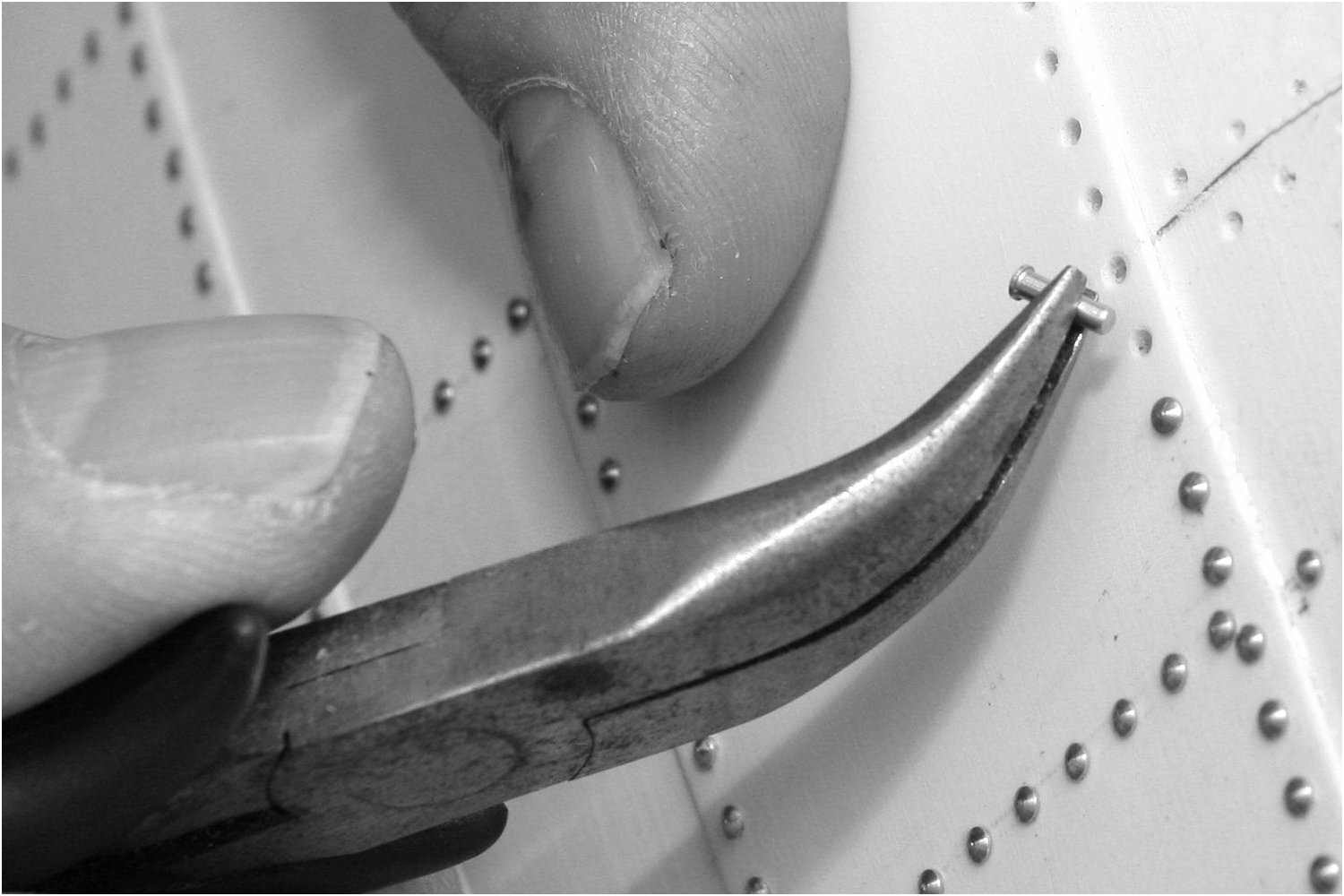 Sollten die Zangenschnäbel an den Innenseiten keinen Hieb haben, bohrt man ein kleines Loch, so hat der Niet oder Nagel sicheren Halt.