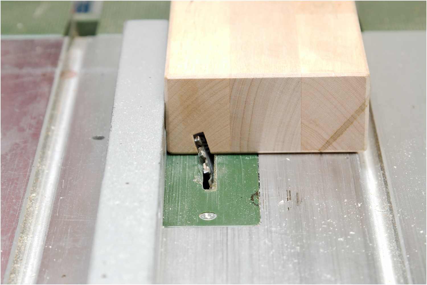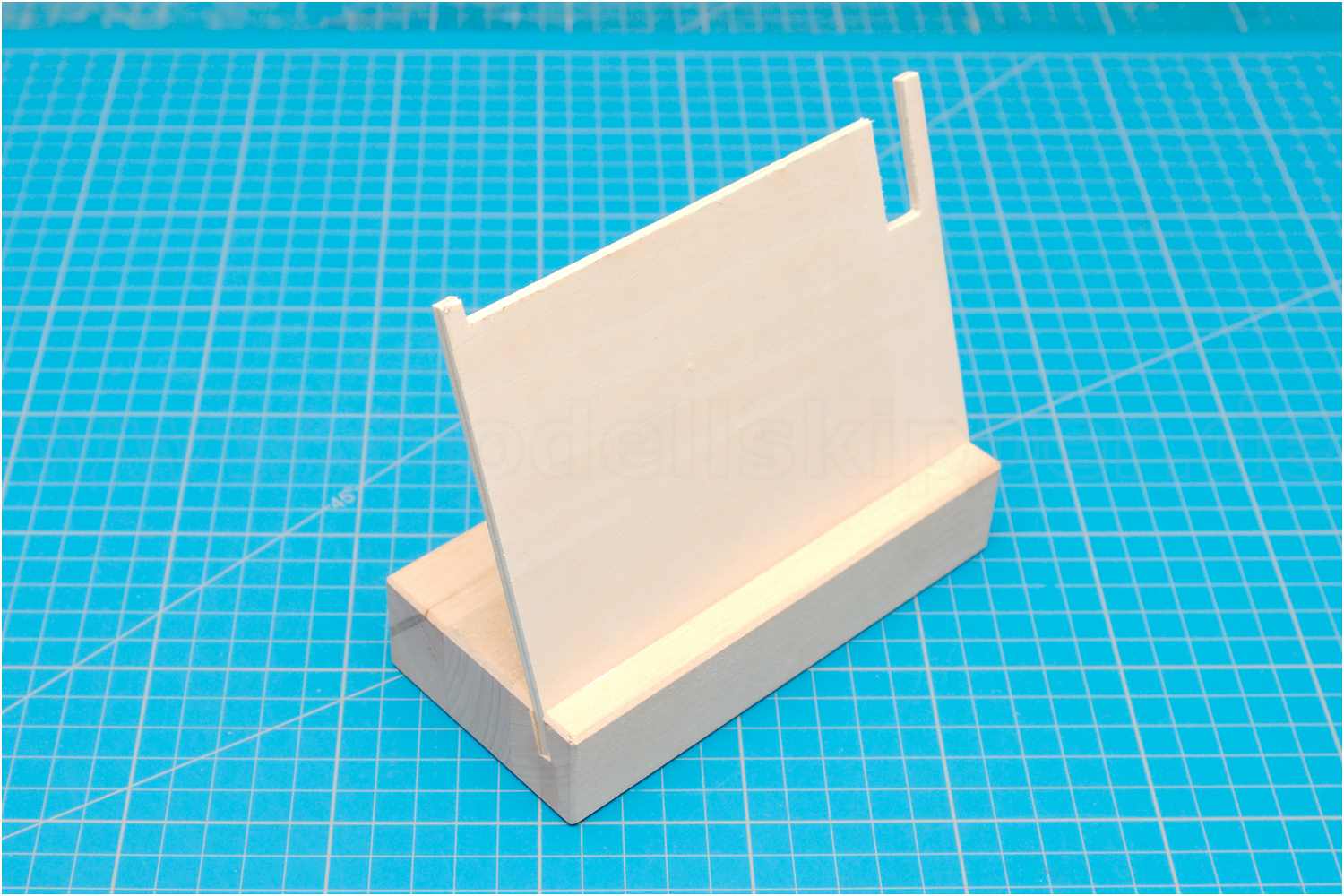 Einen schrägen Schlitz in ein Stück Restholz gesägt und eine Sperrholzplatte eingeklebt.