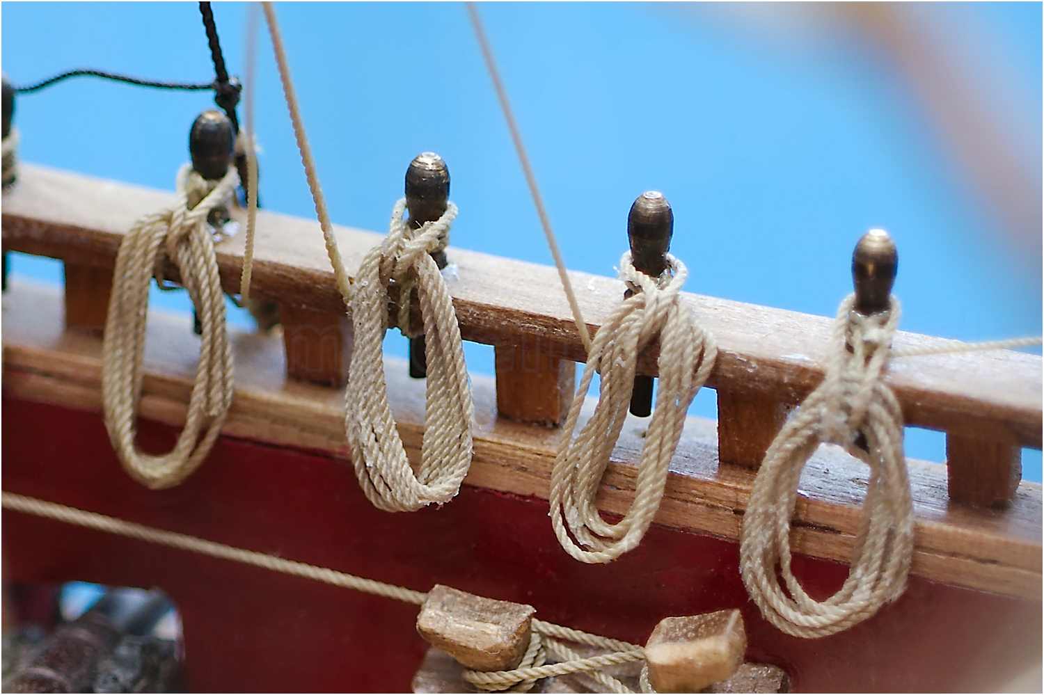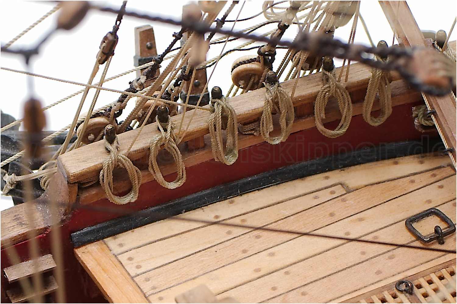Damit Modellseile möglichst natürlich am Modell hängen, können diese mit verdünntem Holzleim getränkt werden, aber oftmals sieht man deutliche Kleberrückstände.