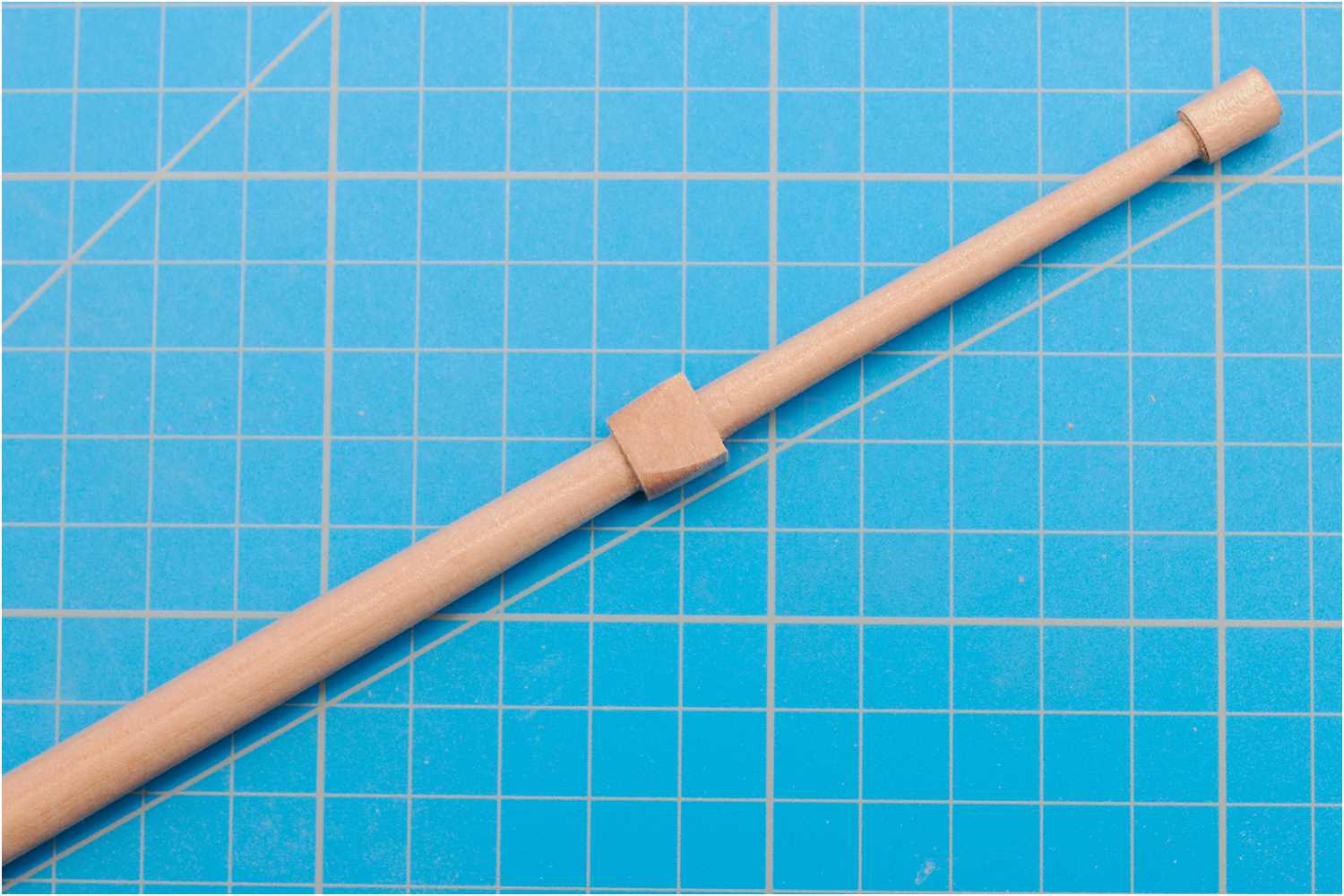 Soll eine Mast eine Verdickung erhalten und man hat kein entsprechend dickes Rundmaterial, wird die Spiere erst normal gedrechsel und dann nachträglich eine separates Stück aufgesetzt, dass aus einem Brettchen geschnitten wurde.