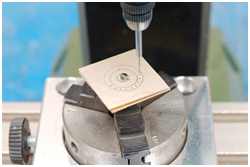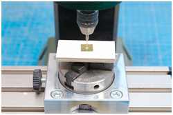 Der in diese Nut eingelegte Streifen ist nun gut fixiert und kann ohne nennenswerten Verzug oder Ausbrechen gebohrt werden.