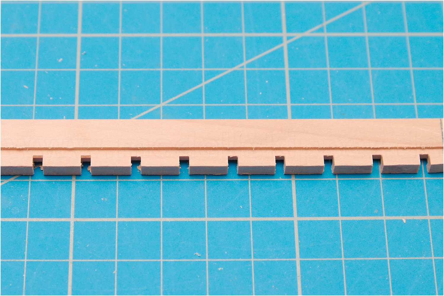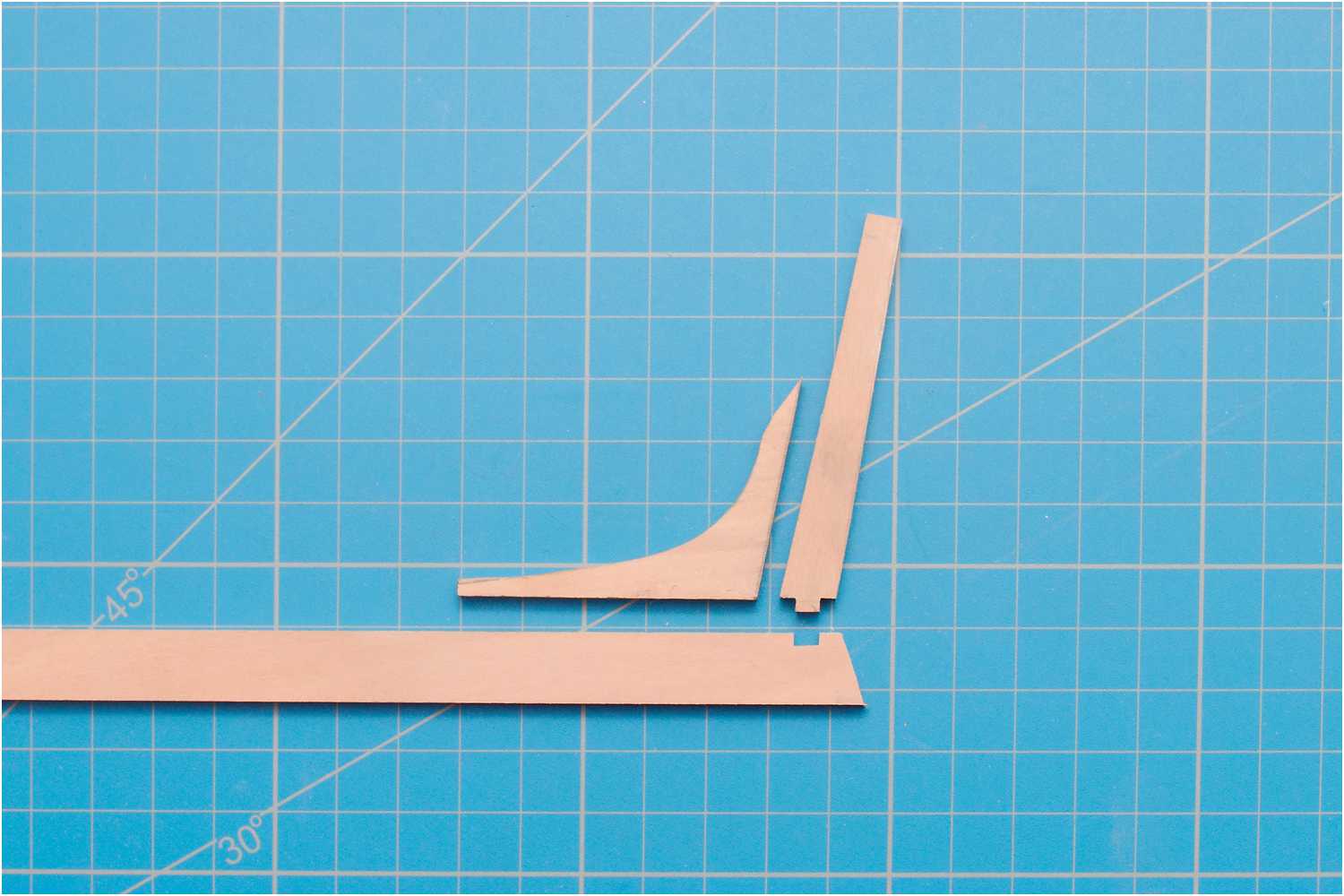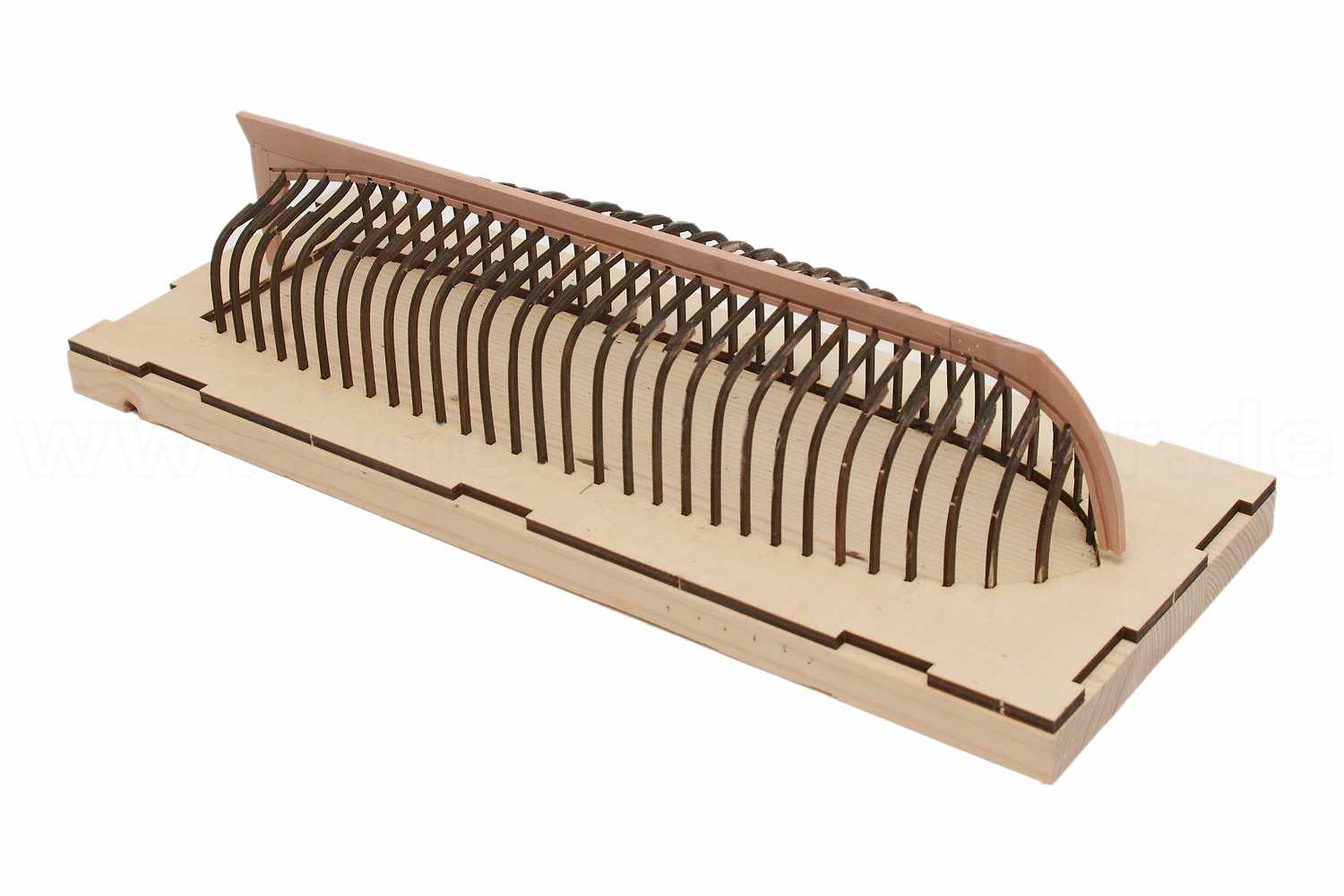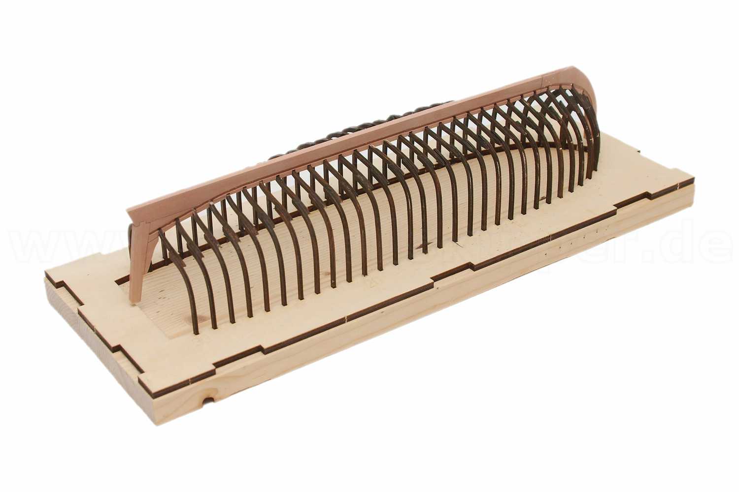 Nach dem Zusammenkleben der Einzeltzeile wurde mittels des gelaserten Kiels aus dem Bausatz als Schablone die Spantaufnahmen gefräst.