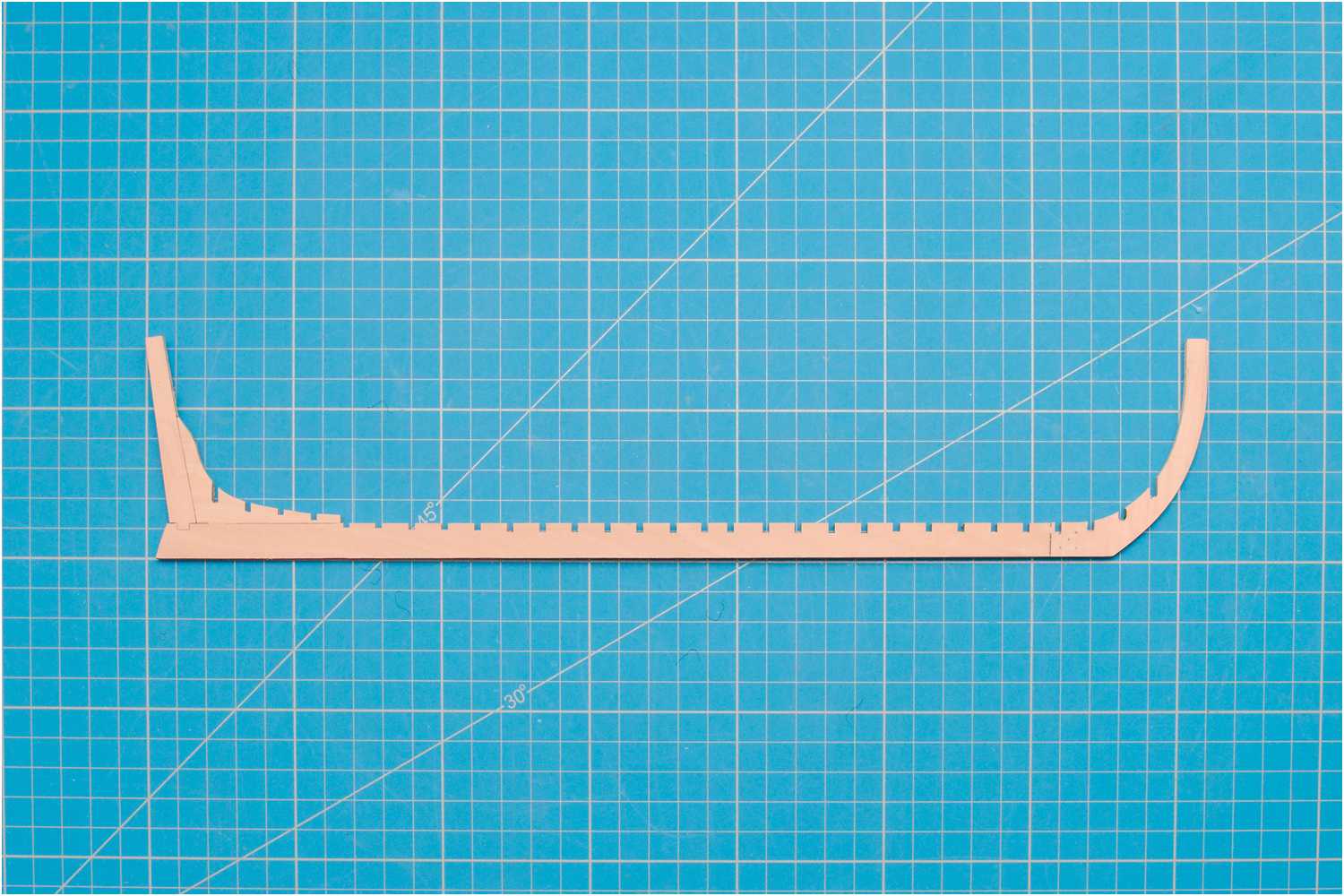 Der Kiel ist aus vier Teilen zusammengesetzt, von vorn nach hinten: